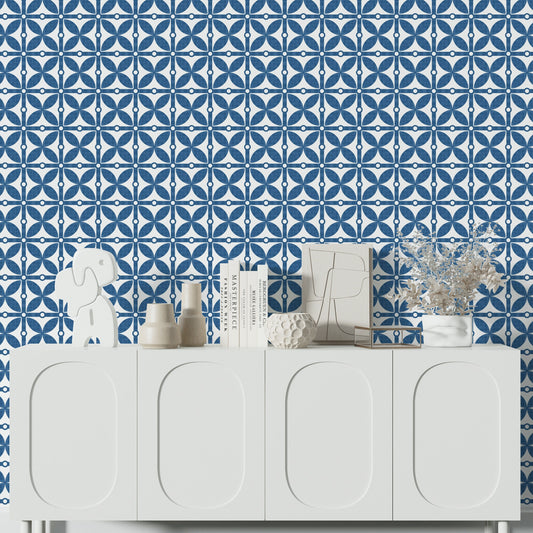 Bellagio Modern Farmhouse Peel and Stick Wallpaper - Blue Mosaic - Water-Resistant Embossed Vinyl Canvas