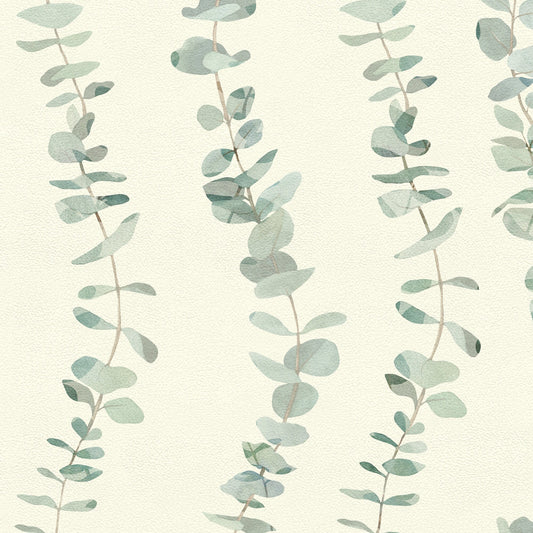 Eucalyptus Country Farmhouse Peel and Stick Wallpaper - Green Striped Botanical - Water-Resistant Embossed Vinyl Canvas