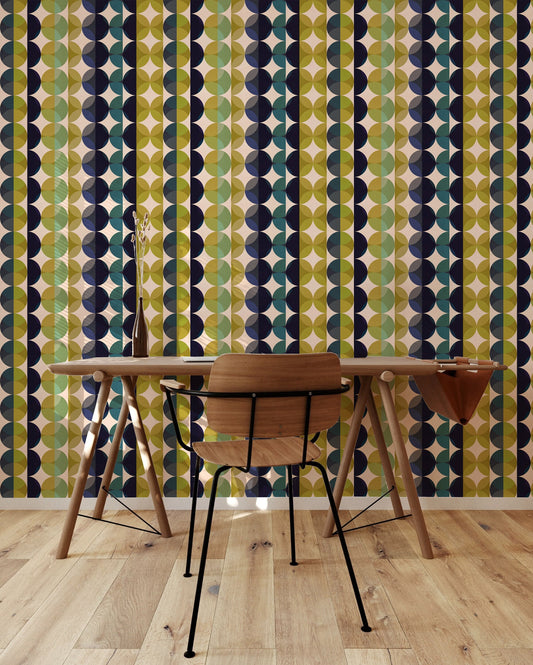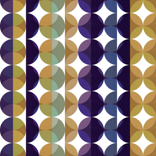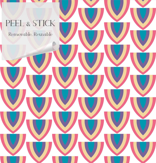 Fruit Slices Mid-Century Peel and Stick Wallpaper - Pink, Purple, Blue Geometric - Water-Resistant Embossed Vinyl Canvas