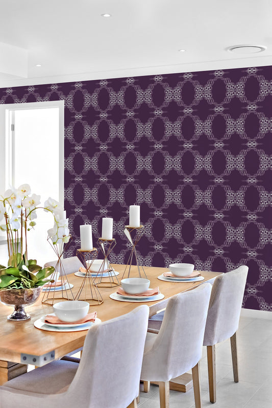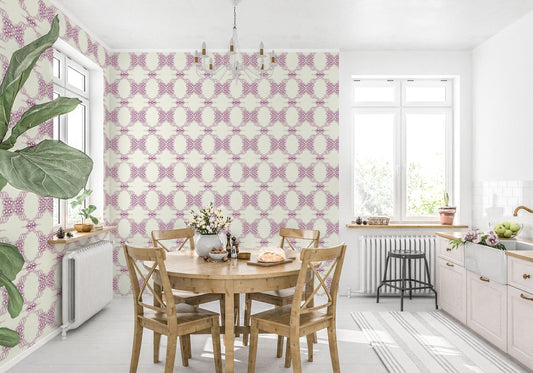 French Cottage in Plum Vinyl Canvas Wallpaper - French Country Ivory, Plum Geometric - Removable Reusable Peel & Stick Wallpaper Panel